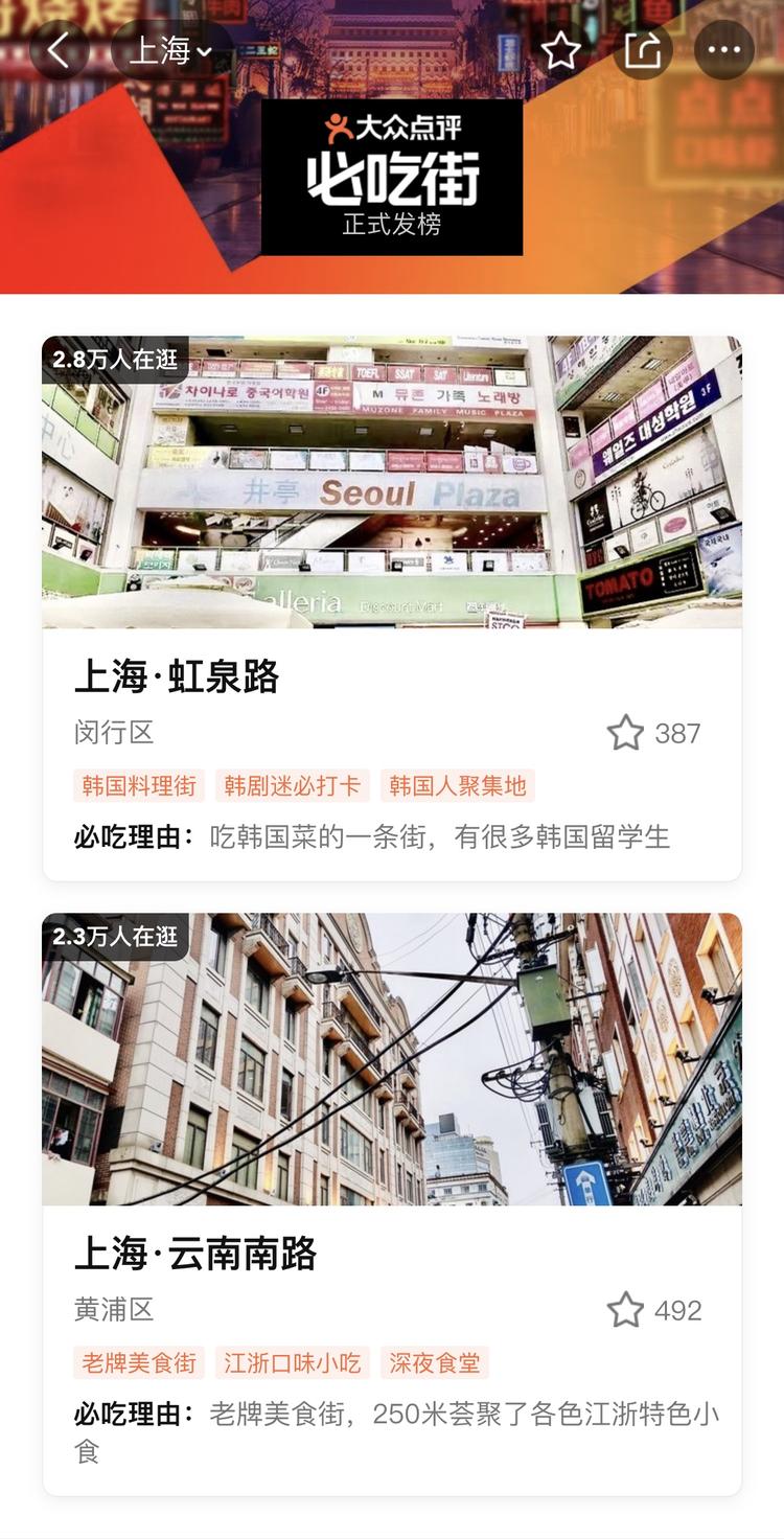 值得一提的是,今年必吃榜首次增加了“必吃街”评选。上海有2条美食街成功入选:虹泉路、云南南路。