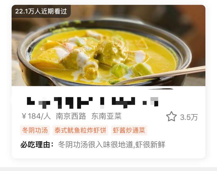 南京西路上一家越泰料理,因冬阴功汤味道地道而入围。南京东路上,有一家本帮菜被评价:“很正宗的上海本帮菜,吃到了呛虾,好好吃。”