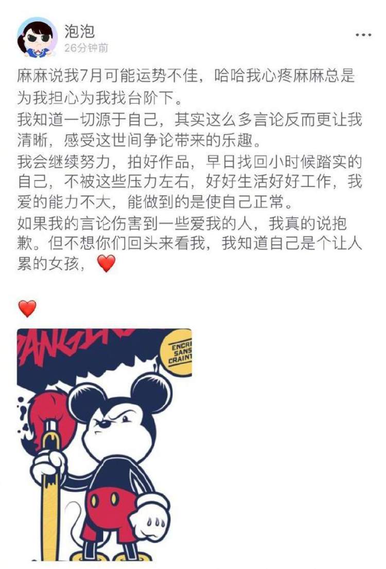 今天,郑爽为自己的说法道歉:“我知道一切源于自己,其实这么讹夺言论反而更让我清晰,感受这世间争论带来的乐趣。我会继续努力,拍好作品,早日找回小时候踏实的自己,不被这些压力左右,好好生活好好工作,我爱的能力不大,能做到的是使自己正常。如果我的言论伤害到一些爱我的人,我真的说抱歉。”