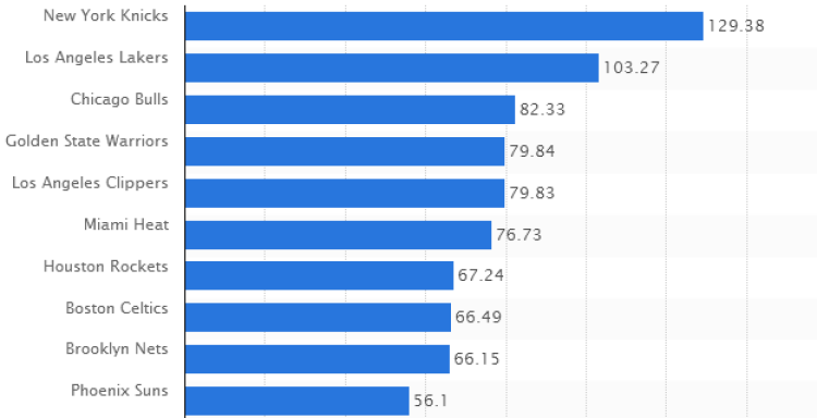 2017-18赛季 NBA球队场均门票价格(美元)