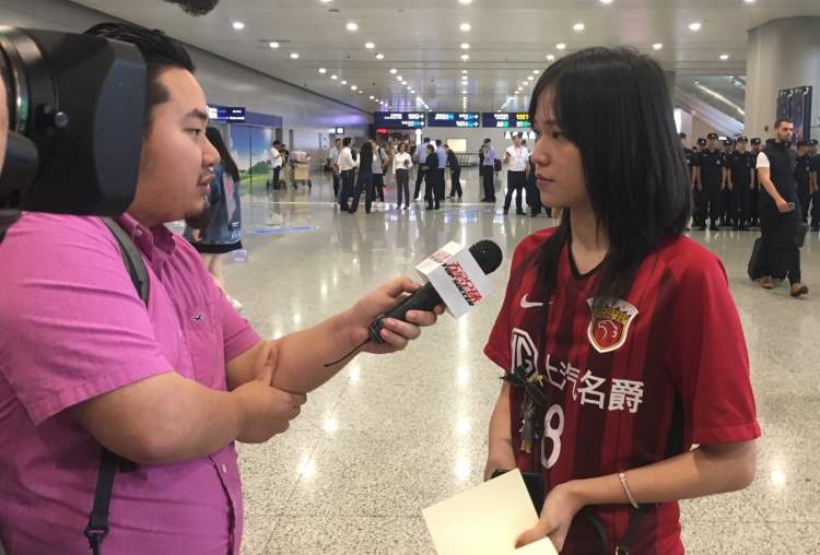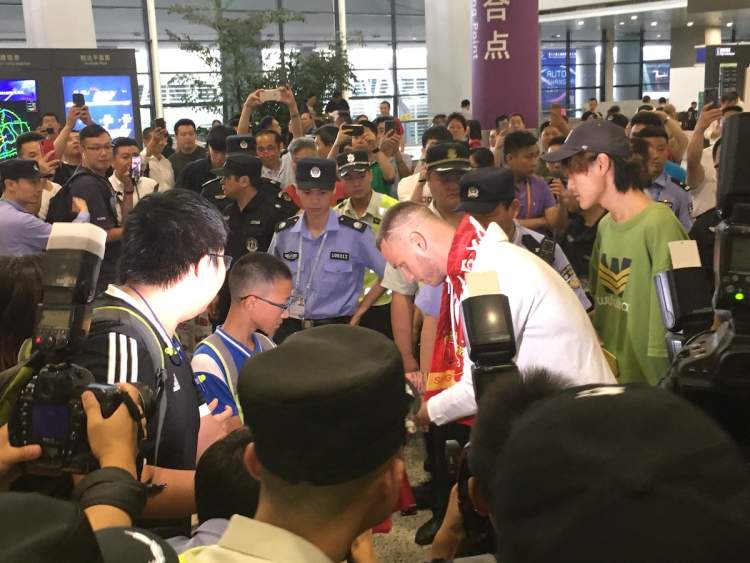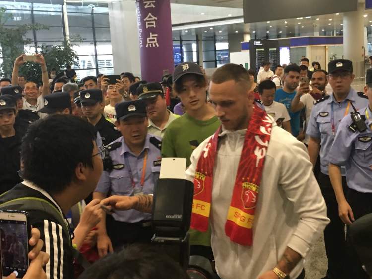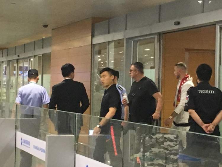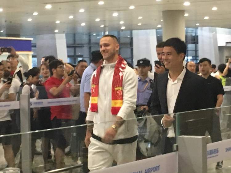 上港俱乐部副总经理孙祥直接在登机口迎接阿瑙托维奇,并且为其带上了上港队的红色围巾。