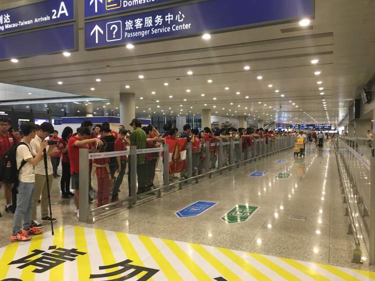 在上海浦东国际机场T2的到达大厅,近百名上港球迷前来接机,他们都希望第一时间能够看到这位成名已久的英超锋霸。