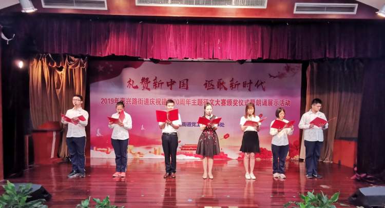 忆往昔峥嵘岁月,赞今朝梦想未来。近日,嘉兴路街道“礼赞新中国,讴歌新时代”庆祝建国70周年主题征文大赛暨朗诵活动,在街道社区文化活动中心举行。