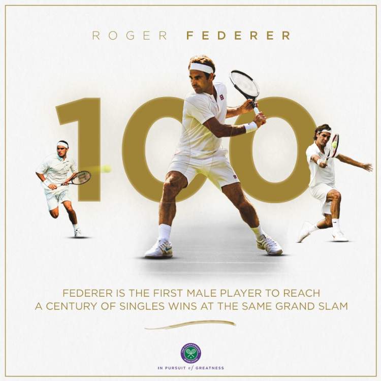 对于温网100胜的历史壮举,费德勒承认是他在离开中央球场时一位球迷告诉他的。