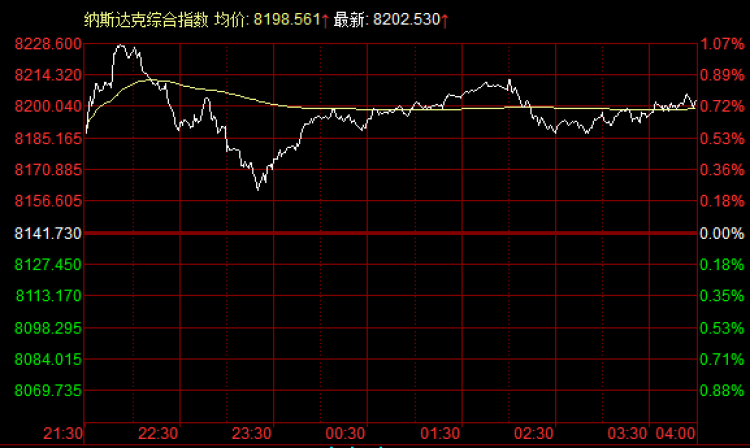 来看一下美股收盘的具体数据,至收盘,道琼斯工业平均指数上涨76.71点,涨幅0.29%,收报26860.20点;纳斯达克综合指数上涨60.80点,涨幅0.75%,收报8202.53点;标普500指数上涨13.44点,涨幅0.45%,收报2993.07点。