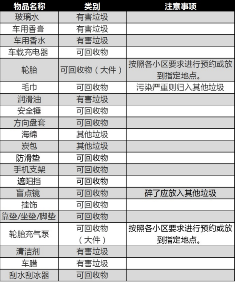 就像汽车用品废弃物严格意义上并不属生活日常垃圾,但其可回收利用程度高,了解其垃圾类别还是很有必要滴。