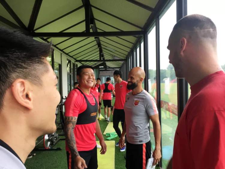 阿瑙托维奇兴致勃勃地参观了训练基地,并对基地的软、硬件设施竖起了大拇指。他还和主帅佩雷拉为首的上港队教练组,以及队友们和工作人员见面,并进行了简单的交流。在与队友们的交谈中,阿瑙托维奇频频放声大笑,显得非常轻松。