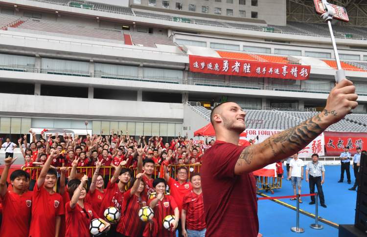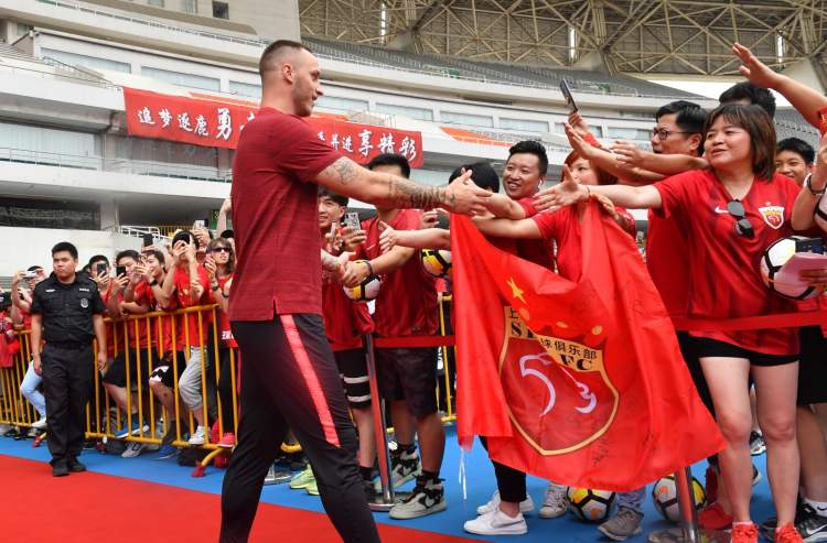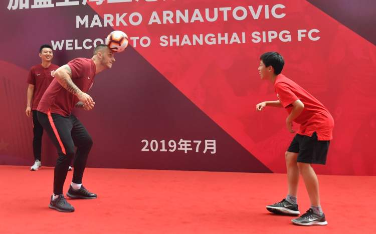 周四下午,上港队夏季转会窗口引进的外援前锋阿瑙托维奇出现在了球队的主场上海体育场,出席俱乐部专门为其召开的媒体球迷见面会。