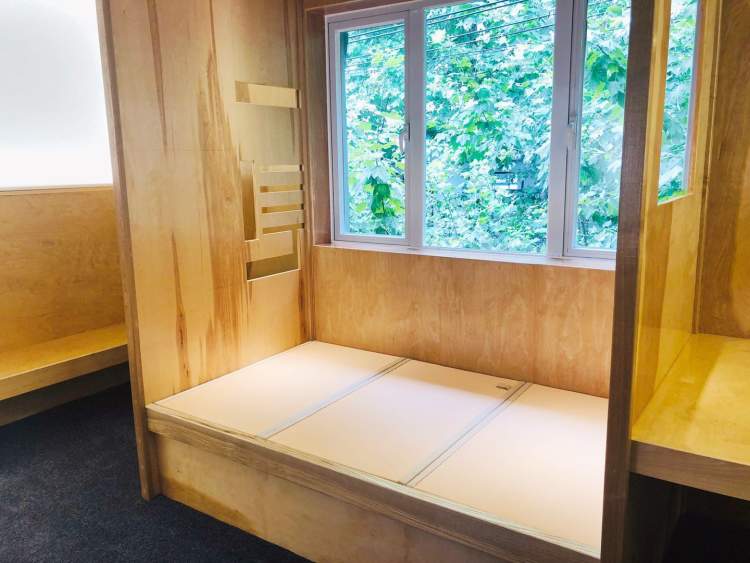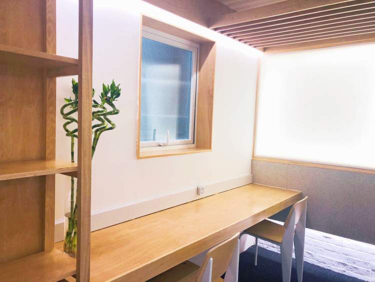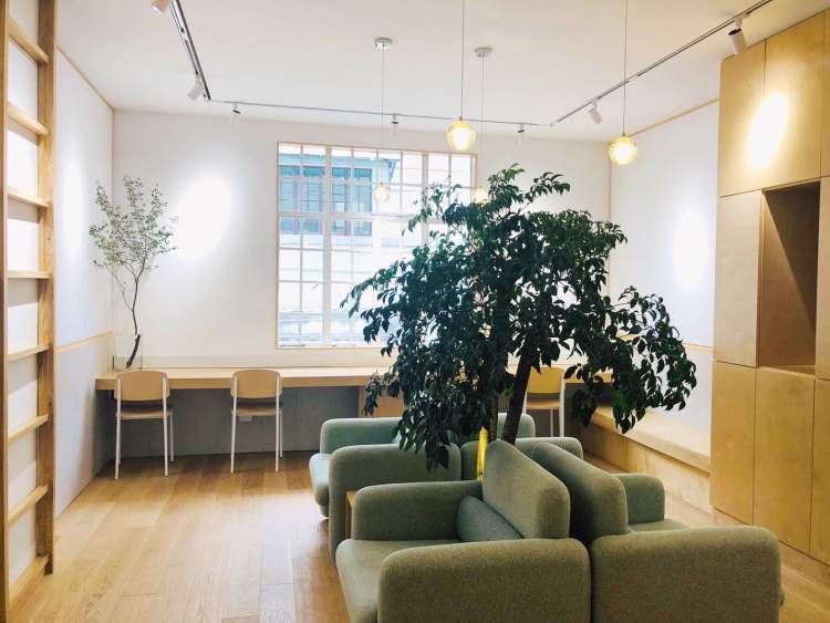 深灰色水泥地面、纯白的砖墙、原木色书架,与文艺的南昌路相互呼应。一楼是公共阅读区,凡是来店的读者都可以在这里免费阅读。二三楼则专对会员开放,共有四间书室,既有矮脚沙发,也有日式榻榻米。可以坐着看,也可以躺着看。但是请注意,无论选择哪种方式读书,都要保持安静。
