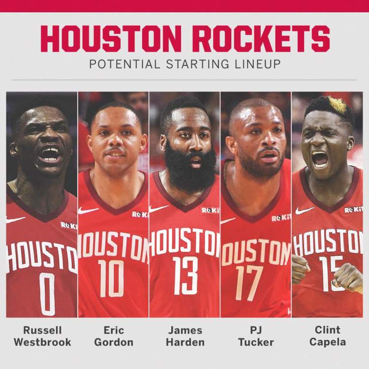 这样一来,下赛季火箭队的首发阵容将由威少哈登这一双MVP组合坐镇后场,无论是冲击力还是身高都得到了提升。