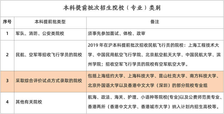 记者获悉,列入本科提前批次招生的院校,共有四个类别: