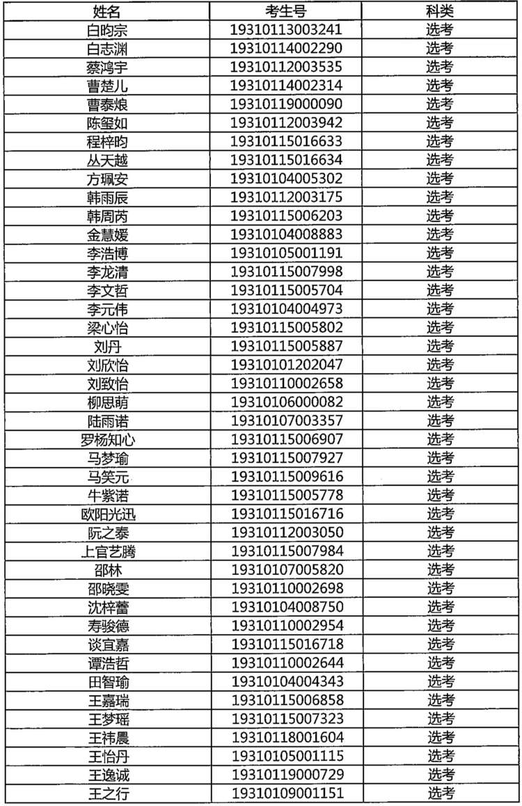南方科技大学提前批录取上海考生名单: