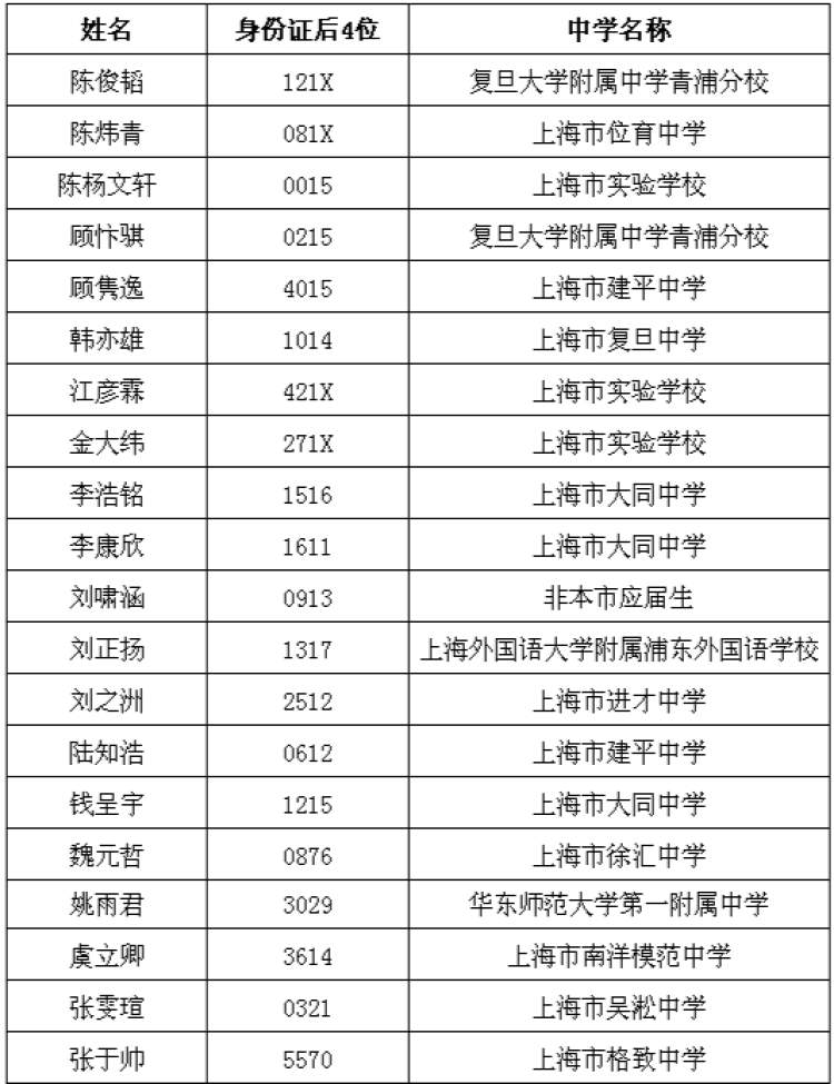 港中大(深圳)录取上海考生名单: