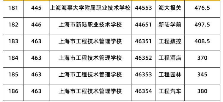 院刚刚,上海市教育考试公布了2019年上海市中等职业学校提前批招生(中本贯通、“五年一贯制”和中高职贯通)各专业录取最低分数线。