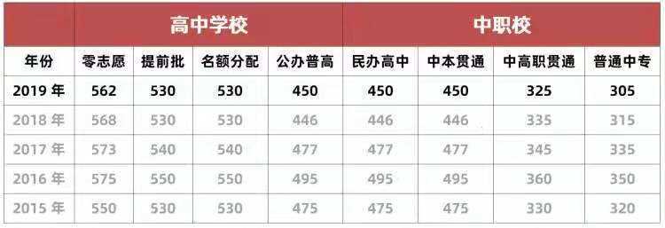 今年职校最低投档控分线分别是中本贯通450分,中高职贯通325分。