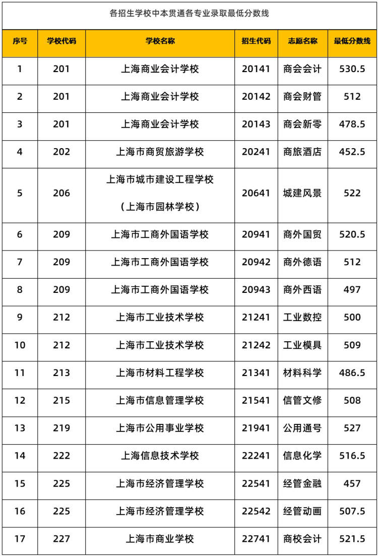 从刚刚公布的中本贯通、“五年一贯制”和中高职贯通各专业录取最低分数线来看,中本贯通录取最低分数线超过500分的,计有32个专业。