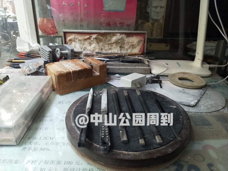 玻璃板下压着一张打印出来的刻字价目表,看得出已经有些年头了,