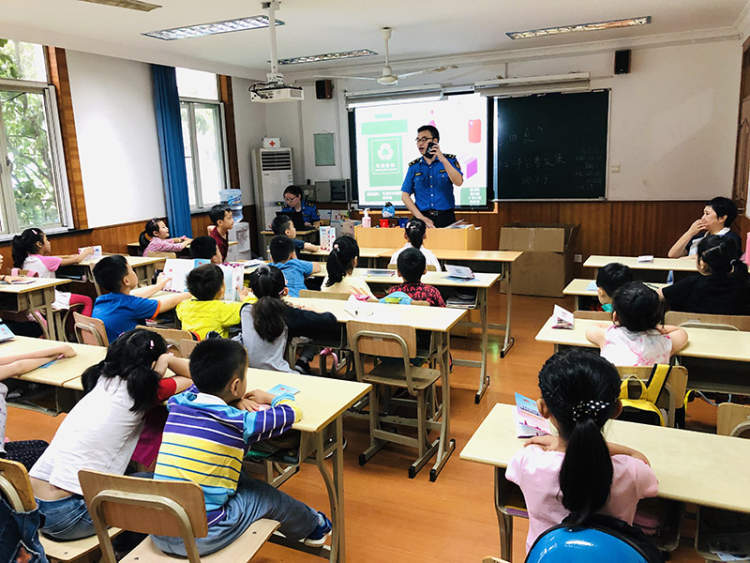 随着爱心暑托班的开展,也有更多的辖区共建单位参与进来。本周的配送课程里,由城管中队执法队员来到课堂上,为学生们讲解垃圾分类知识,如何正确处理生活中的常见垃圾,争做环保小卫士。