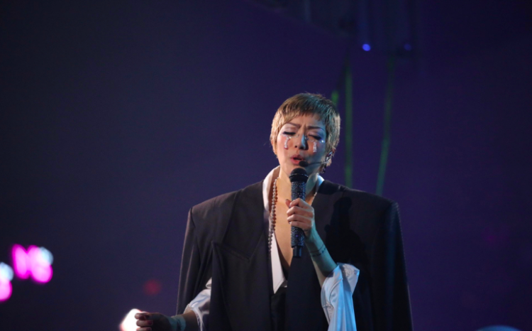 演唱中,她情难自控,一度哽咽落泪唱不下去,全场歌迷尖叫为她打气。