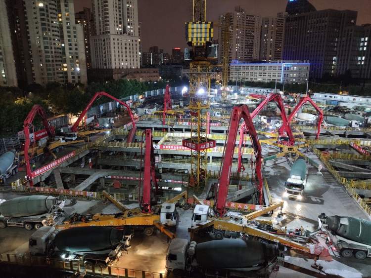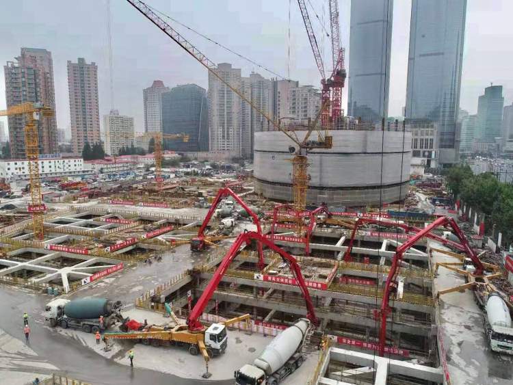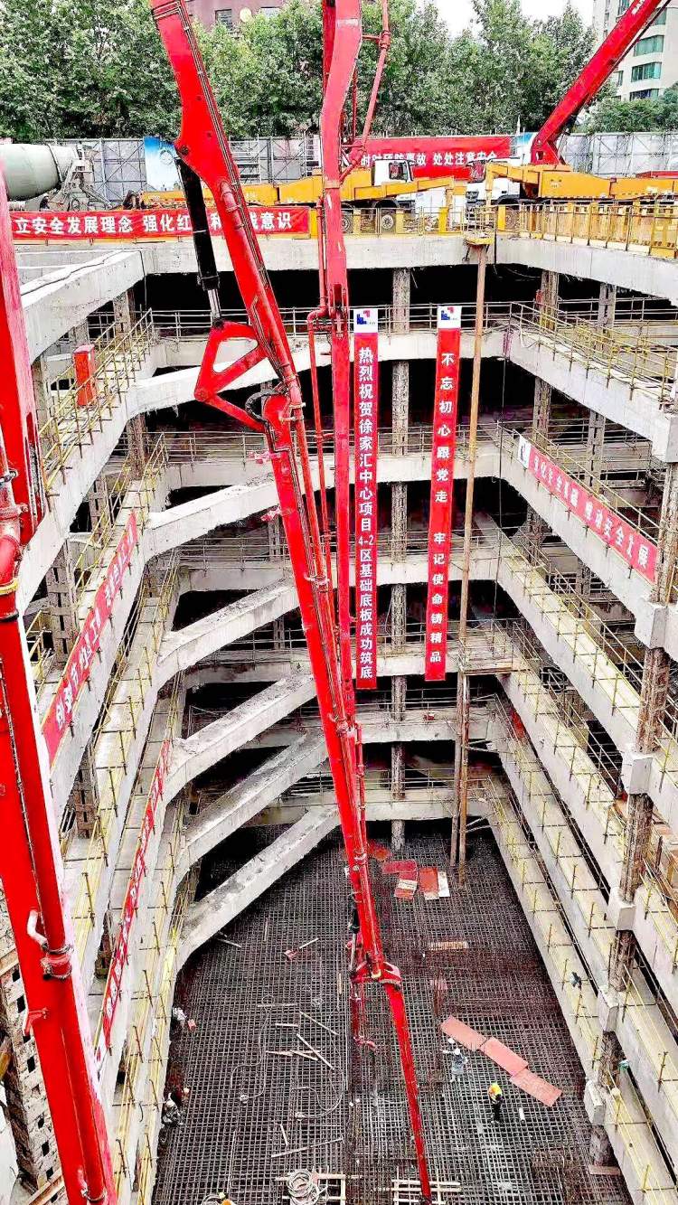 未来申城的“浦西第一高楼”——徐家汇中心虹桥路地块高达370米的T2塔楼工程,其最深达37.2米的主塔楼混凝土大底板中的最大也是最后一块底板,历经上海建工建设者48个小时的冒雨连续浇筑,于今日上午6点30分成功“筑底”,创造出迄今为止申城房屋建筑最深的大体积基础混凝土底板浇筑新纪录。