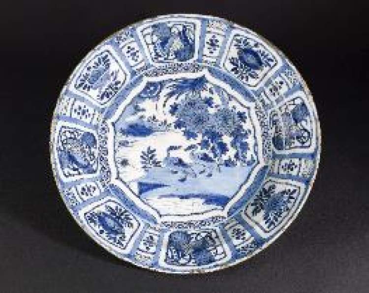 ■饰有鸭子图案的青花瓷盘