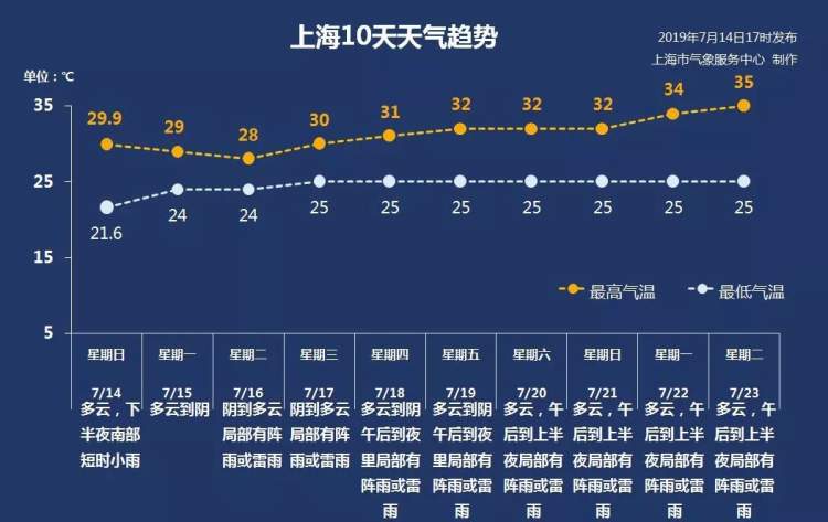 气温方面,下周本市最高气温稳步增高,从下周三起可能“3”字头要持续一周,进入7月下旬后或向高温线发起挑战。