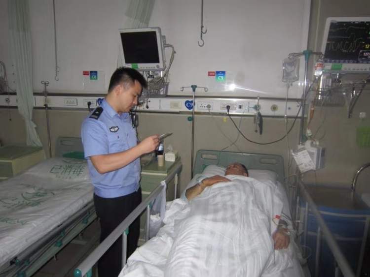 外高桥边检站民警赶赴医院等待卡斯特实施急救手术,稳定病情后进行人证对照(受访者提供)