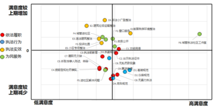 经测评,2019上半年全市城管执法工作社会满意度综合评分为82.50分,相比2018下半年提高了1.92分,有较大的提升。对照“较差、一般、尚可、良好、优良、优秀”六个等级,达到“良好”等级。