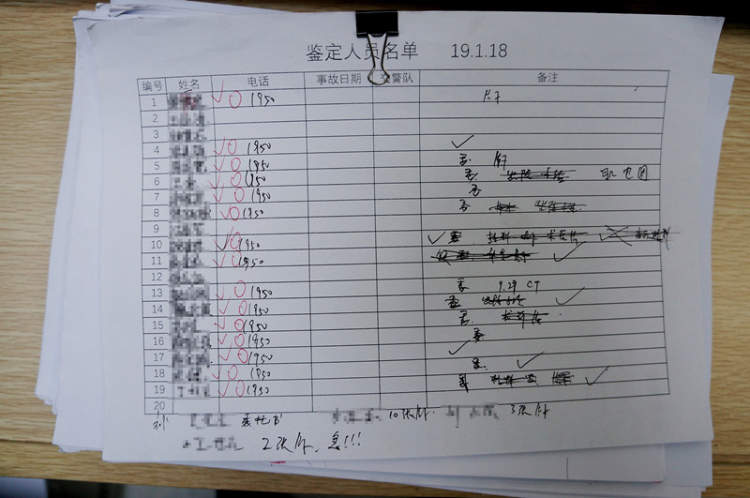 成功诱骗伤者后,“人伤黄牛”与事先串通好的鉴定机构虚构伤情。“人伤黄牛”代理一批人伤案件后,会通知鉴定人定期前往“黄牛”办公点为多名伤者统一开展鉴定。