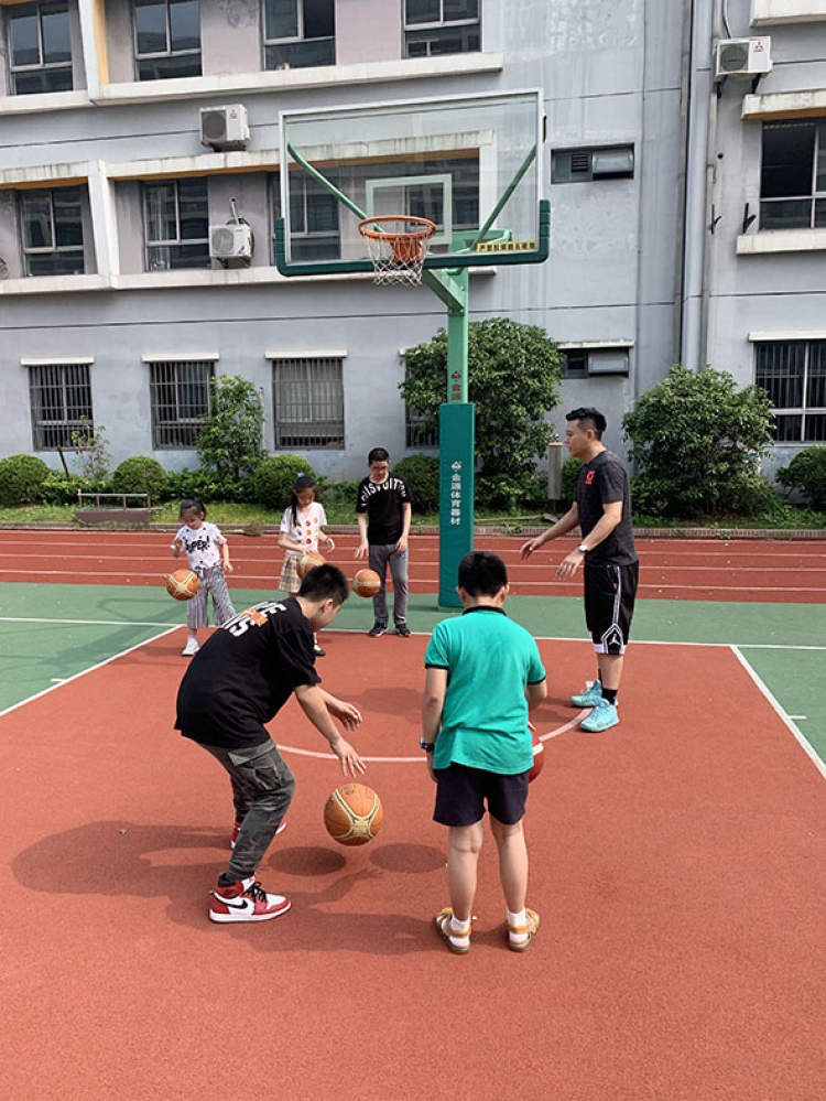北郊高级中学篮球场上,一拨孩子们玩得不亦乐乎,志愿者周老师正在为孩子们上一堂欢快的趣味篮球课。孩子们绕操场跑一圈、认真做热身运动后,开始学习篮球基本传球接球技巧并进行练习。接着举行三人一组接力拍球传球游戏,输的小组接受双手抱头做5次半蹲的“惩罚”。通过趣味篮球活动,孩子们从互不认识到成为好朋友,并意识到了团队凝聚力和协作精神的重要性。
