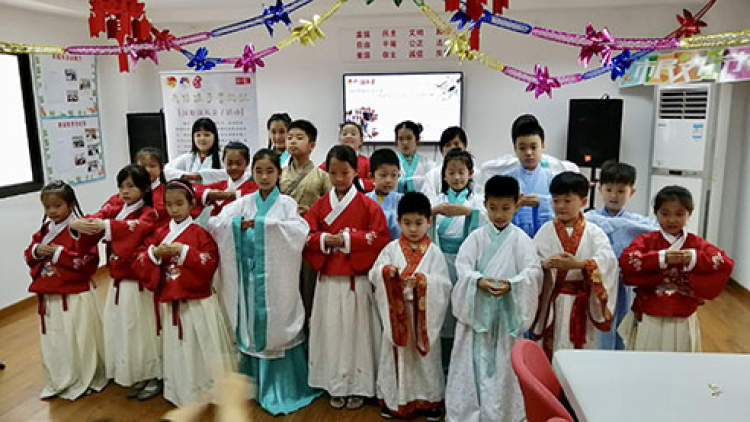 来自欧四和虹仪居委的小朋友和家长们欢聚一堂,参加“我陪孩子学礼仪”——汉服汉礼亲子活动。崇崇老师通过大量丰富的文献资料和图片向孩子们普及汉服的由来、历史演变、汉服文化、汉服礼仪等知识;通过图片对比,讲解了穿汉服的步骤、男生女生不同的款式,包括大人着装的服饰。汉服的基本特征为﹕交领右衽、无扣结缨、褒衣大袖,同时又以盘领、直领、箭袖、纽扣等为其有益补充。随后,开始学汉礼。从立容、坐容、揖礼。通过穿汉服学汉礼,提升了孩子们文明向善的道德修养,使得汉服文化得到了传承。