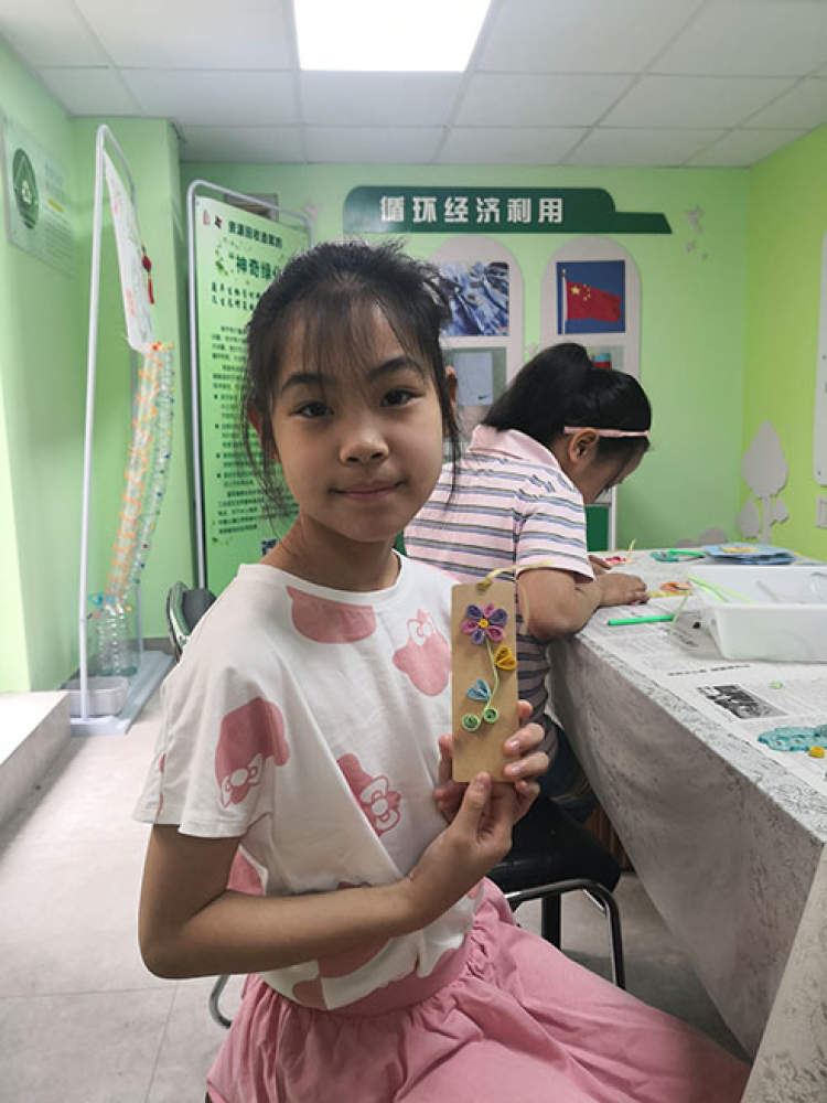 欧阳垃圾分类微体验馆开展了“家园分外美”全民绿色行动之衍纸书签活动。老师介绍了制作衍纸所需要的材料和工具后,细致讲解了基础卷纸的方式和技巧,把各色衍纸条捏出圆形卷、眼睛卷、水滴卷等造型,再组合拼贴成漂亮的图案以及颜色的搭配等。随后,小朋友们开始制作漂亮的色彩卡纸条,搭配童心的构思,更能使衍纸作品突显出其特色。做好零碎元素,孩子们按照模具选大小、按照图样配颜色,做出了所需的泪滴状、眼睛状花朵,不一会儿,花朵、花瓣、叶子等元素就都做好啦!小朋友们用五彩衍纸挥洒出一个个颜色鲜明的图案,点缀在书签上,做出充满艺术智慧、漂亮精致的文艺范书签。
