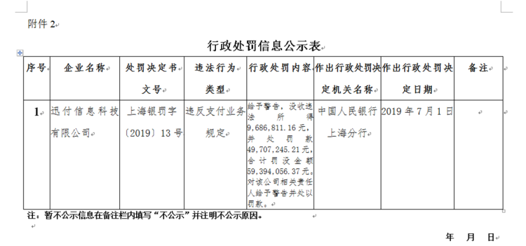 近日,央行上海分行通过官网发布行政处罚信息公告显示,环迅支付因违反支付业务规定,没收违法所得968.68万元,并处罚款4970.72万元,合计罚没金额5939.41万元,同时相关责任人被给予警告并处以罚款。