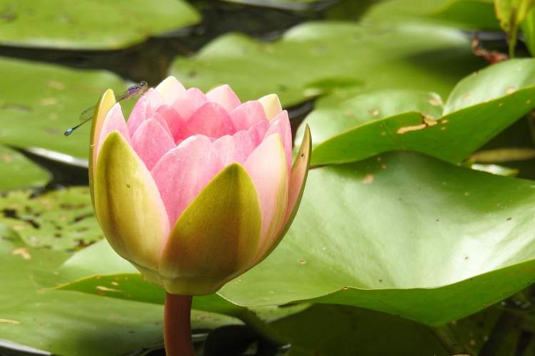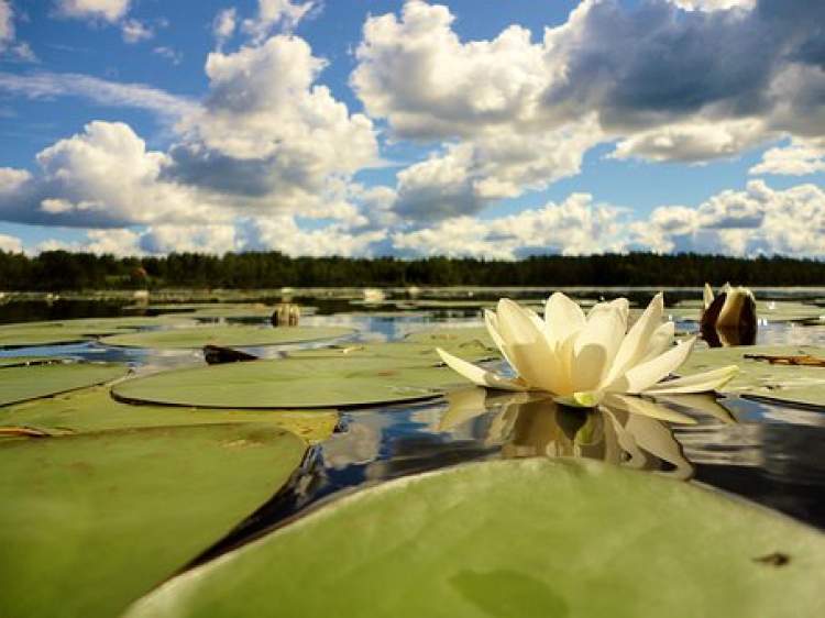 倘若从《诗经》中挑选一首诗来形容睡莲,那么想必选择《蒹葭》十分妥当:“所谓伊人,在水一方。溯洄从之,道阻且长。溯游从之,宛在水中央。”小小的睡莲远远地开在水面上,不喧闹,不攀附,任谁惊叹赞美,只是幽静而娴雅地生长,自顾自地美丽;它把身体贴近水面,姿态谦逊,像绽放于水面的一朵微笑;又将头颅轻扬,一顷碧波仿佛划开了人世间的烟火。美而不艳,清而不傲,云水之间,它是第三种绝色。