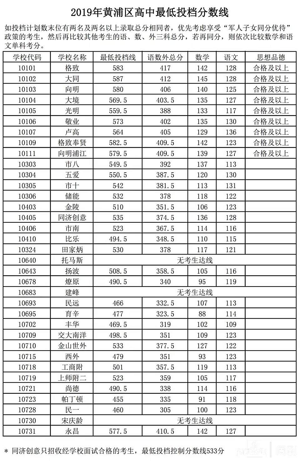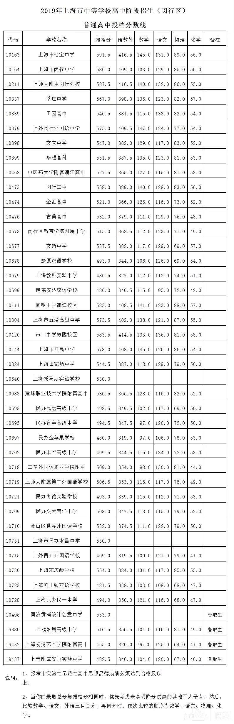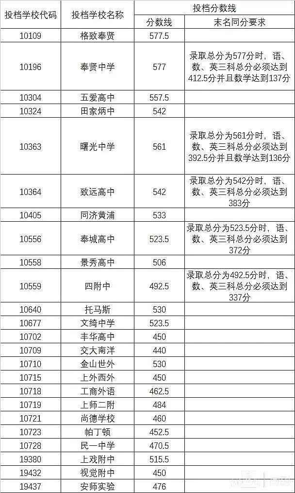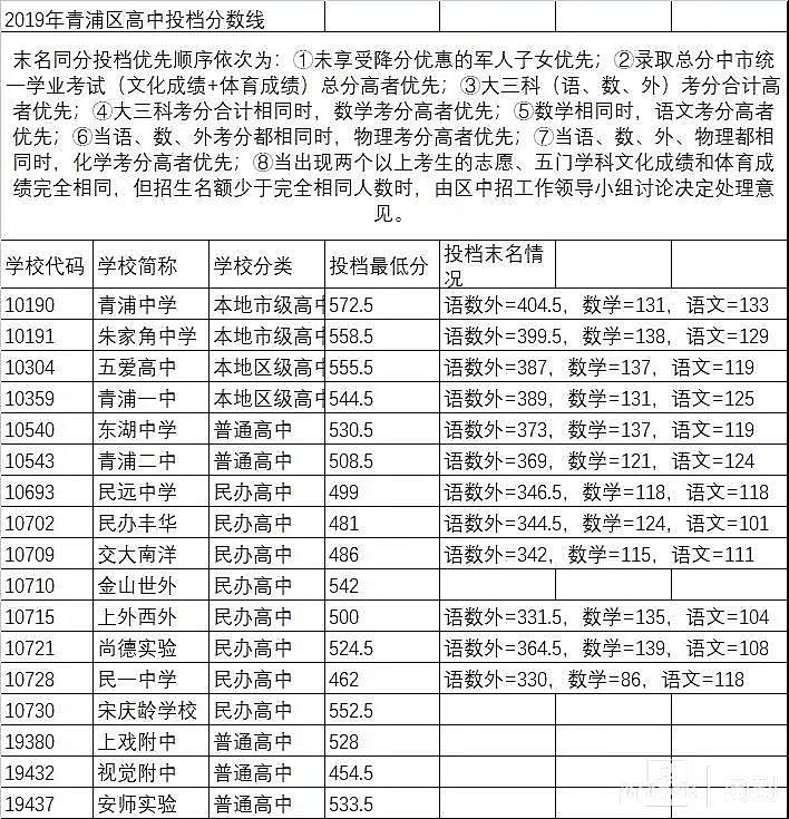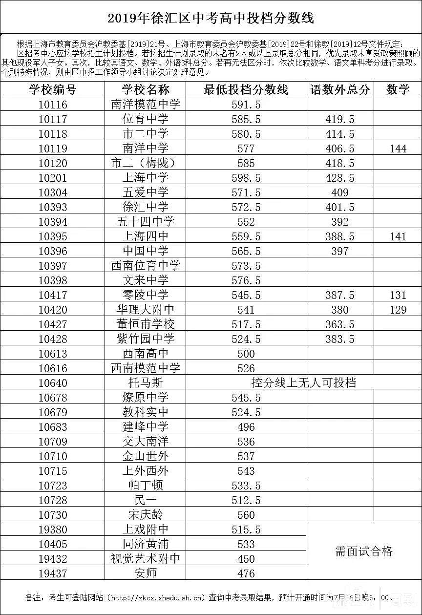 上海16区中考平行志愿投档分数线全出炉!徐汇进上中分数线598.5分! 董川峰 2019-7-16 来源:周到上海 今天,16个区的高中学校平行志愿分数线公布了。周到记者收集整理,所有高中的投档分数线都在这里了,请大家收藏好。 分数线公布前,大家都预测今年可能会降低。没错,今年很多高中的分数线确实都比去年降了一点点。而徐汇区进上海中学的分数线为:598.5;而杨浦区进复旦附中的最低分数线为:599分。 杨浦1-15志愿分数线 奉贤1-15志愿分数线 虹口1-15志愿分数线 来源:周到上海 作者:董川峰 赞一个 (0)