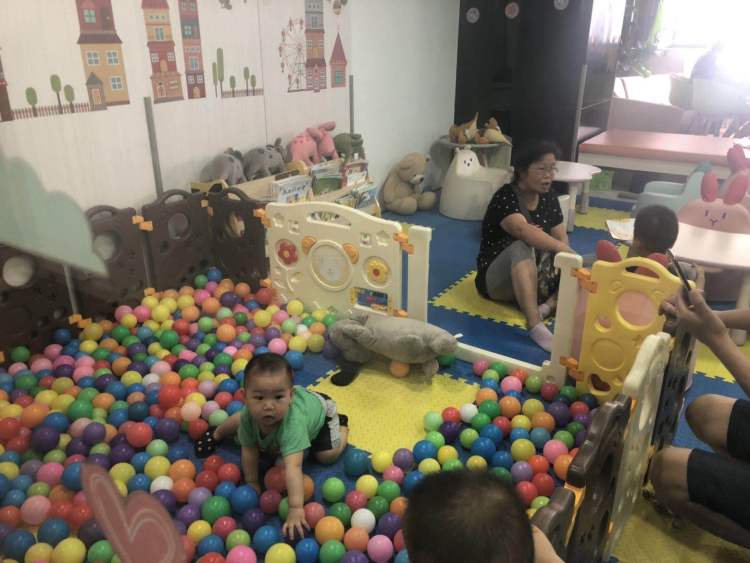 早晨6时许,李大叔拿着环保袋来到二楼食堂,买了满满一袋包子。9点,蔡阿婆带着2岁的孙子来到亲子乐园,孙子和其他小婴童一起在软垫上爬行、滑梯,她则安心地在一旁同其他家长分享育儿经。