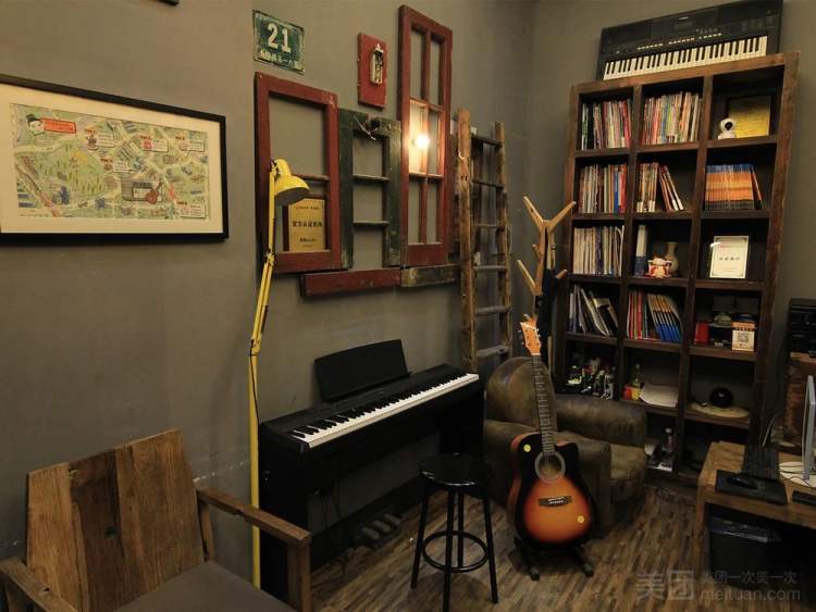 一头脏辫,左手和右腿上分别有两处纹身,下巴上的小胡子配合着他浑厚的嗓音,一动一动的,很是可爱。汤木常常会坐在椅子上,弹着吉他唱着歌,整个房间被吉他声和歌声填满了。透过背后的玻璃门,可以看到有一处摆放着许多木头工具的房间,那是汤木制作吉他的地方。