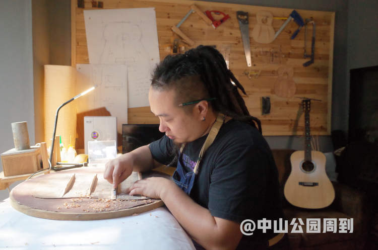 “初心就是‘木头’。因为我二姨父是木工,儿时的暑假,几乎每天都会和表哥一起闻木香、玩木头。当时觉得木头好漂亮啊,哪怕是边角料也很有趣。”汤木说道,“后来去英国进修的时候,跟苏格兰的师傅简单地学习了制琴工艺。回国后,就开始自己慢慢做吉他了。因为弹吉他是一种向外的力量,而做吉他能把力量往回收,是一种内敛的力量。”每一把吉他在弹奏时,每个音符不仅传递着弹奏者的感情,还饱含了做琴者的用心。“很多人只注重用吉他的表演,而忽略了吉他本身的灵魂。”汤木就是希望通过做琴的方式来表达自己。