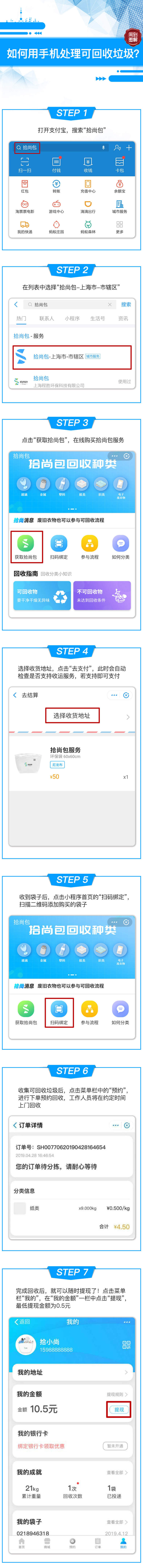 周到君这次要介绍的就是其中一个上门取件服务。通过支付宝小程序“拾尚包”,你可以以0.5元/公斤的价格统一售出可回收玻璃、金属、塑料、纸类、织类、电子废弃物、废旧衣物,甚至不需要事先进行分类。