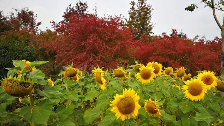 混着泥土清香的微风吹着孕育果实的向日葵,原本耷拉下来的花瓣随之轻轻摇动。驾驶着观光车的园方工作人员告诉记者,这是一片混着两个品种的向日葵地,事实上,在花开海上生态园里播撒了不同花季的种子,“让游客每个季节都有花赏。”