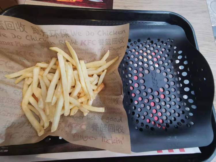 这种可循环餐篮去年下半年起在上海推行,目前正在全国推广,已覆盖至5000多家肯德基餐厅,预计每年将节约超过2000吨纸张。