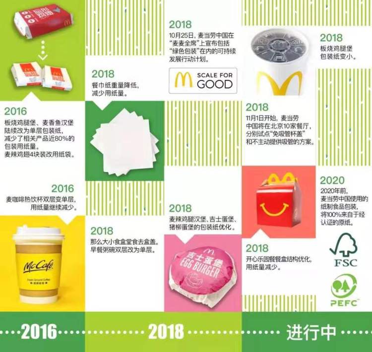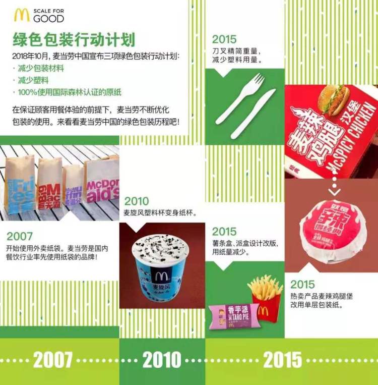 周到君获悉,除了配合上海的垃圾分类新规,多年来麦当劳也在实行“绿色包装行动计划”,包括减少刀叉塑料用量、优化包装纸、减少热饮杯用纸量、试点免吸管等等。