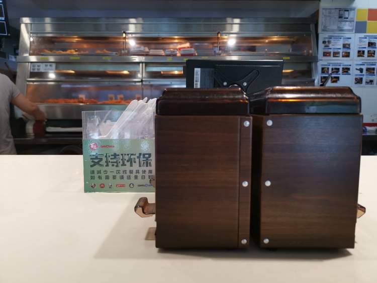 在减少垃圾产生方面,麦当劳在点餐与取餐处放置不再主动提供一次性餐具的告示。张经理告诉周到君,现在索要一次性餐具的顾客也逐渐减少,由于该店附近为办公区,部分客人也会自带餐具。