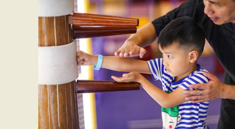 除了多家武馆的体验课,当天在静安大悦城还举办了“武术+”传统文化亲子嘉年华。通过投壶,梅花桩,木人桩等展现武术元素的游戏关卡,让小朋友们以闯关的形式,来当一回“武术高手”。现场家长和孩子还能通过电子互动、卡通观赏等亲子形式,了解武术基础动作和历史文化。
