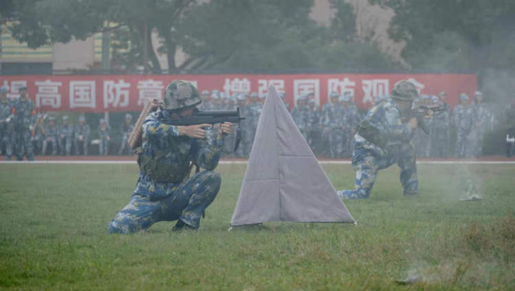 据悉,上海体育学院在军训中首次引入战斗演练,实现了学生军训内容与参军入伍训练课目的贯通,有利于大学生不断提高国防意识,增强国防观念。