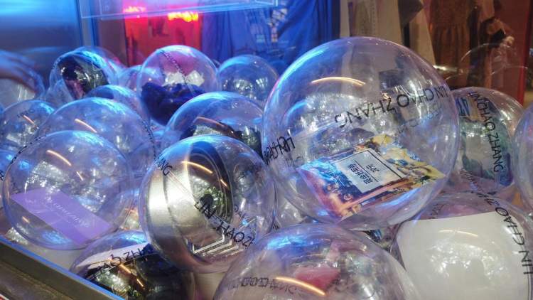 当然了,服装类小店也在南昌路上占有重要“席位”,如果好好在南昌路上走一圈,你一定会注意到这样一家店——作为“门面担当”的橱窗里展示的并非店里售卖的“主打款”,而是一排盛着透明小圆球的“抓娃娃机”。