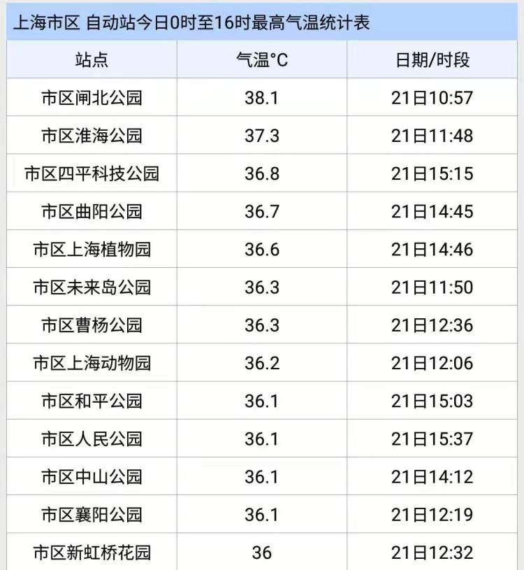 在全市的气象气象站中,有突破37℃的,甚至还有超过38℃的。