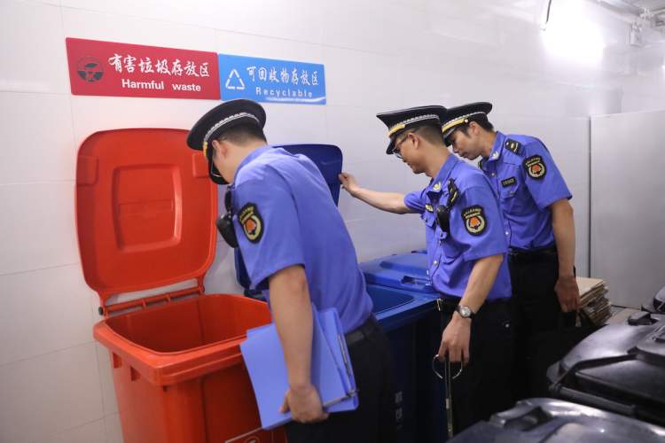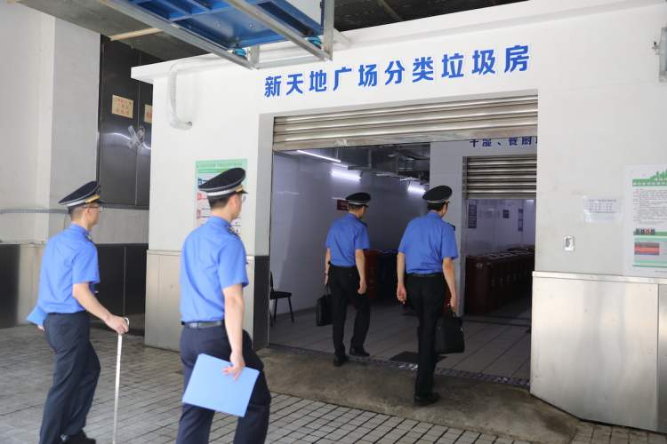 除了在硬件设施上“做文章”,新天地广场还有一套长效监督管理机制。其中,“垃圾分类督导员”就是保障这一机制的主力军。这个队伍主要由集团联合物业公司业务骨干组成,会定期不定期开展垃圾分类检查督导,发现问题及时与企业沟通,协调解决,对反复发生问题、屡教不改的,内部也会发放限期整改通知书,督促整改。