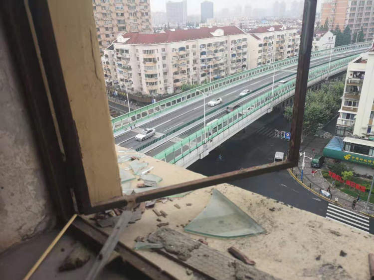 ▲一扇外开窗的玻璃破损后,玻璃碎片随时可能从高空坠落