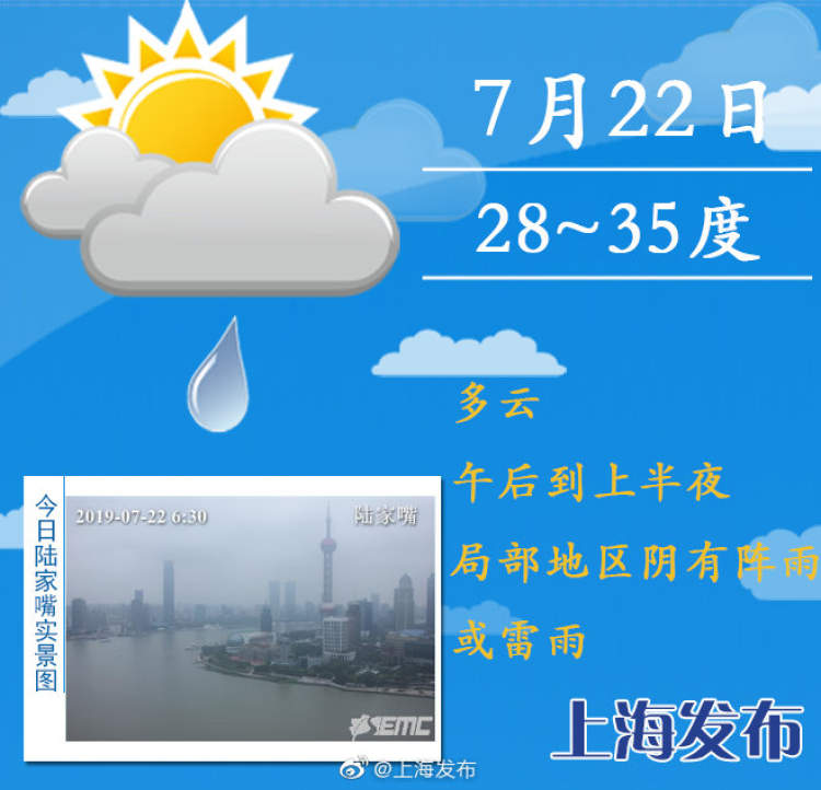 今天是中伏第一天 晴热高温成主旋律 “闷蒸”体感显著 周到君 2019-7-22 来源:周到上海 今天多云,午后到上半夜局部地区阴有阵雨或雷雨,最高温度最高温度34-35度,最低温度28度。副热带高压主体控制上海,晴热高温是天气主旋律,加上湿度不低,“闷蒸”体感显著,大家一定要做好防暑降温工作哦! 来源:周到上海 作者:周到君 赞一个 (0)